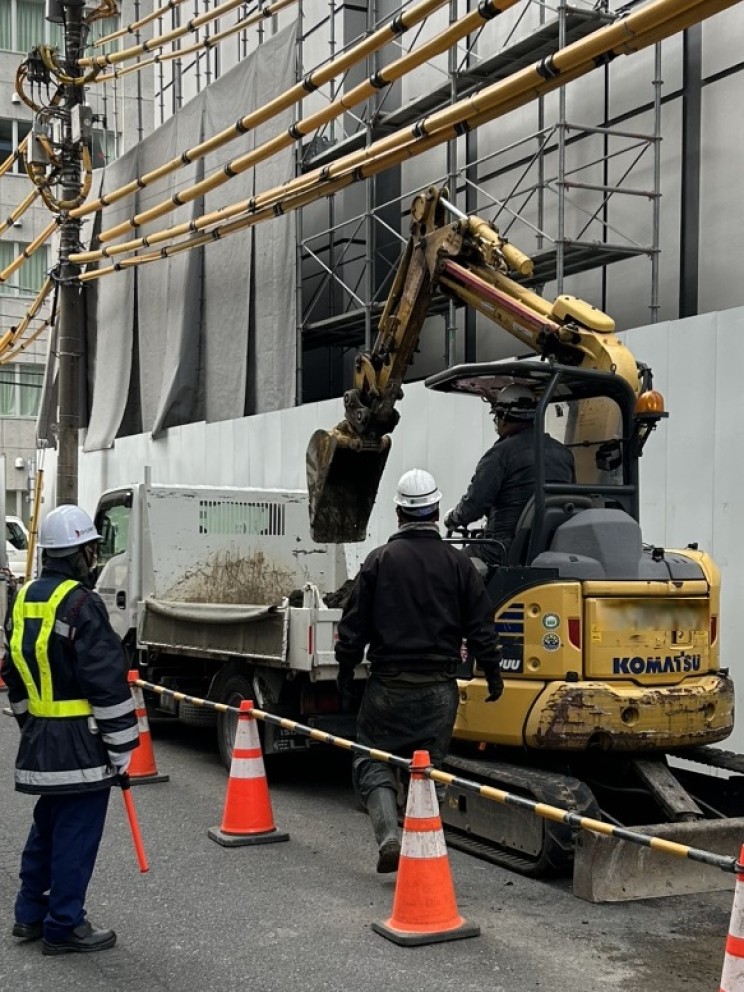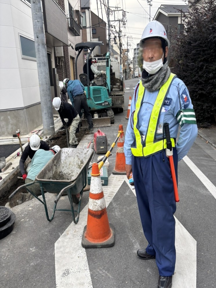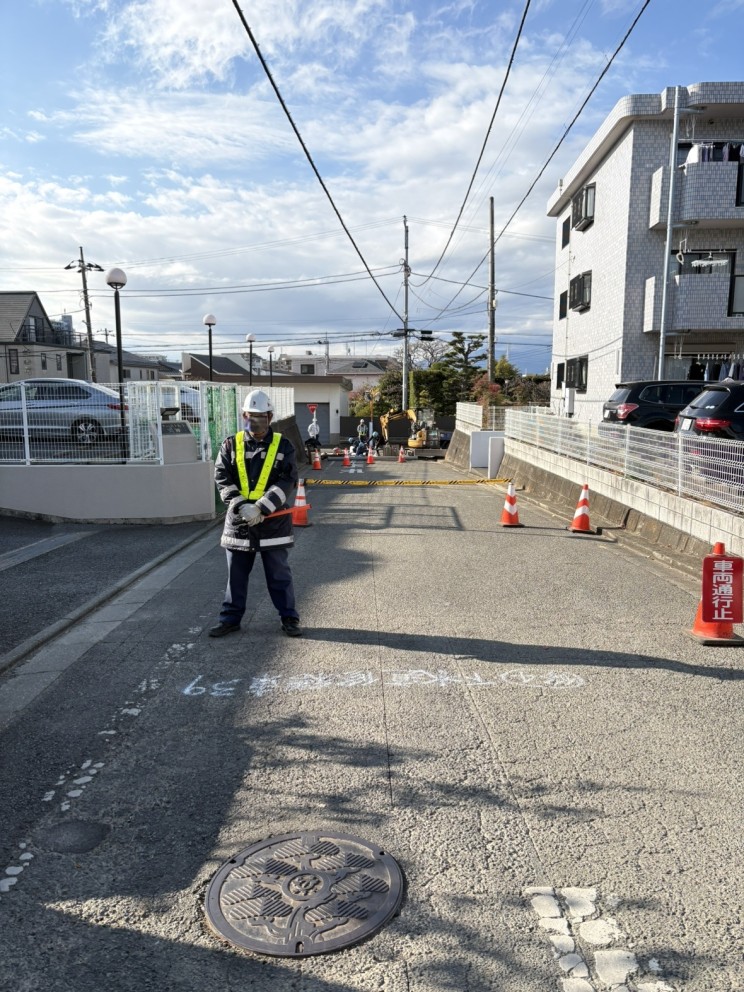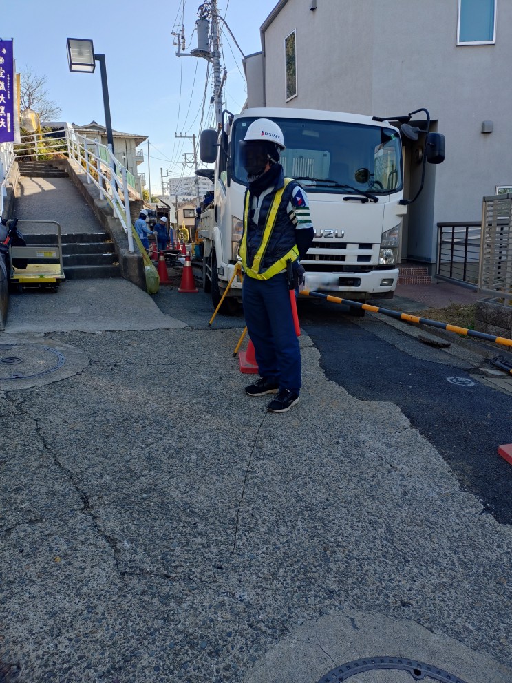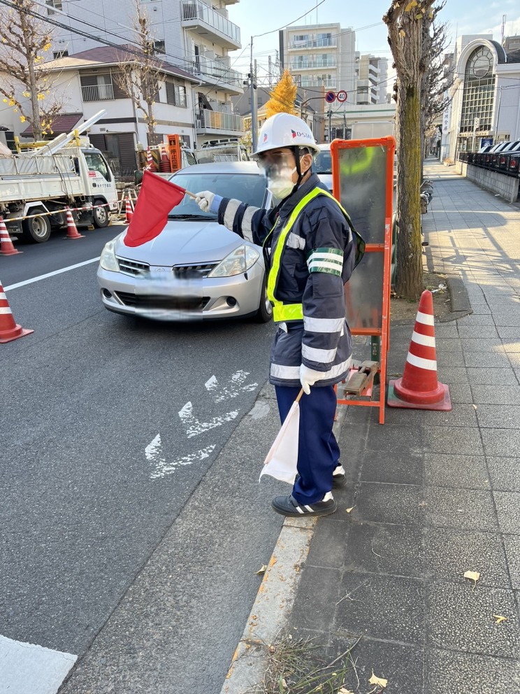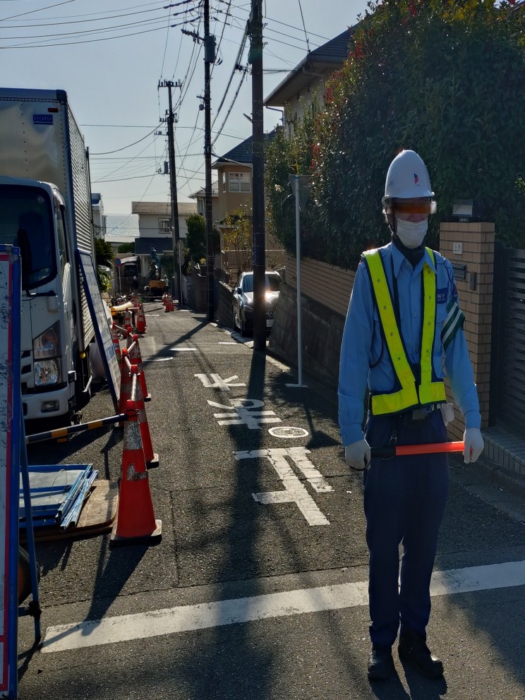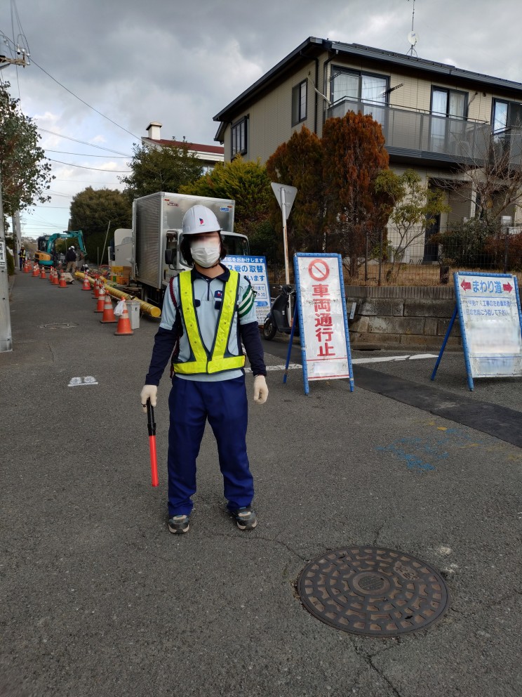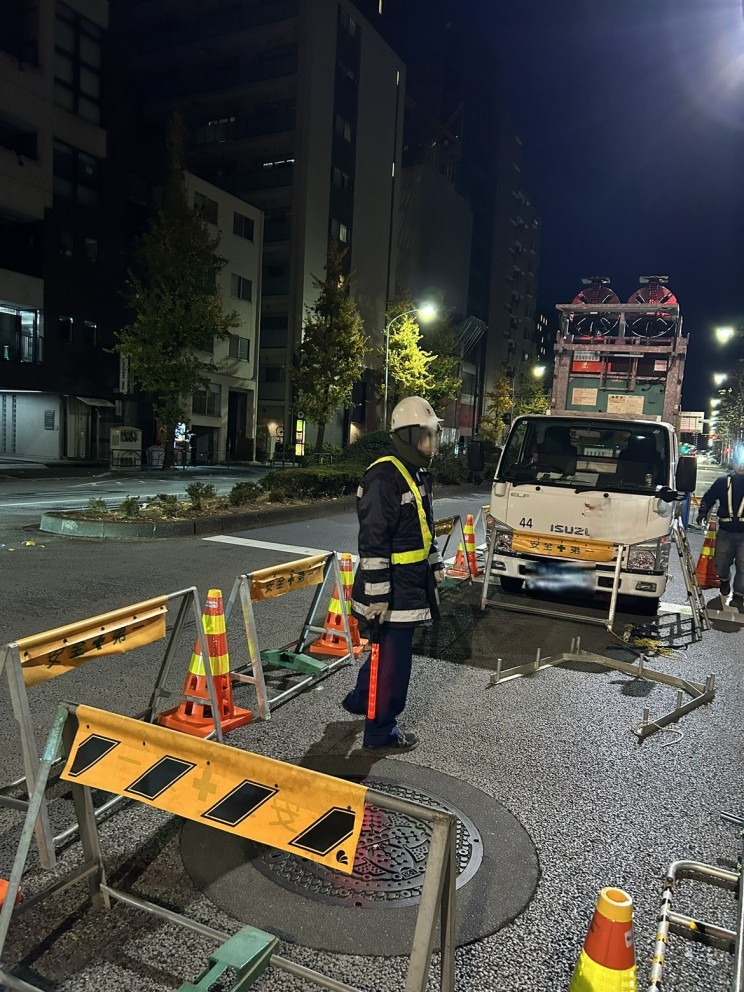 工事現場警備 下水道工事における交通誘導警備(夜間) -