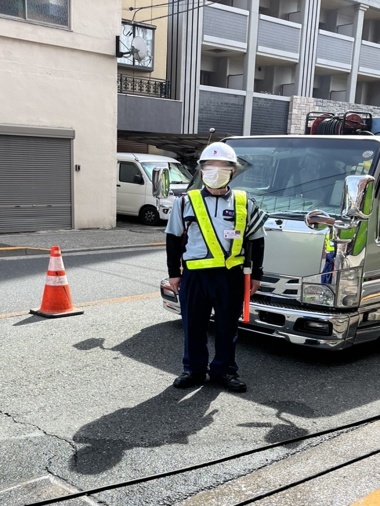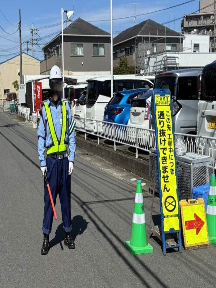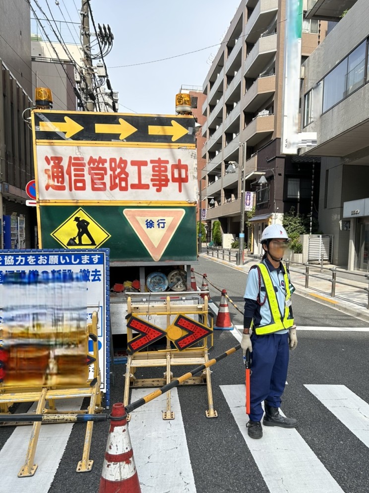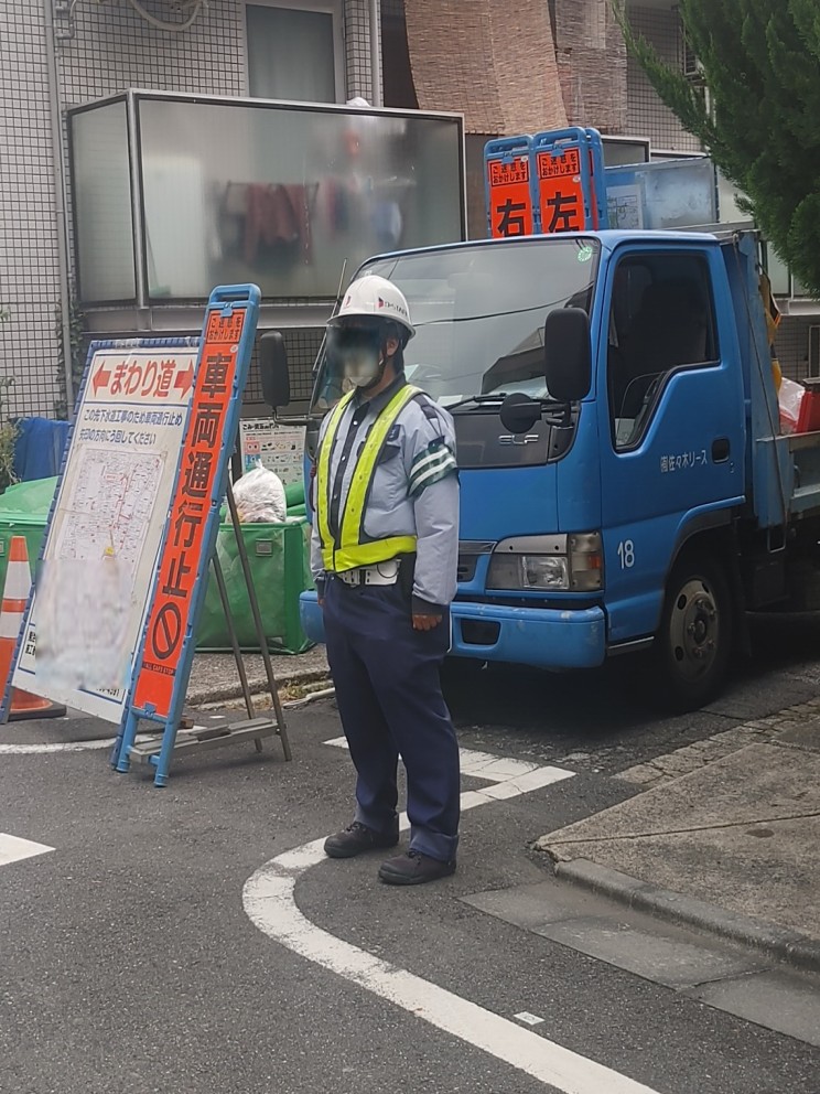 工事現場警備 舗装工事における交通誘導警備(夜間) -